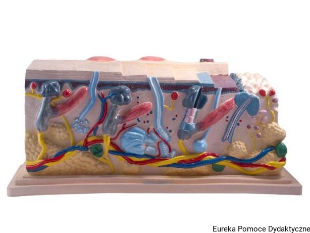 Model ze względu na swe duże wymiary w bardzo przejrzysty sposób ukazuje budowę poszczególnych warstw naskórka oraz skóry właściwej. Widoczne gruczoły łojowe, potowe, mięśnie przywłosowe a także przestrzenne łodygi włosów oraz inne struktury pozwalają na dokładne zapoznanie się z budową.