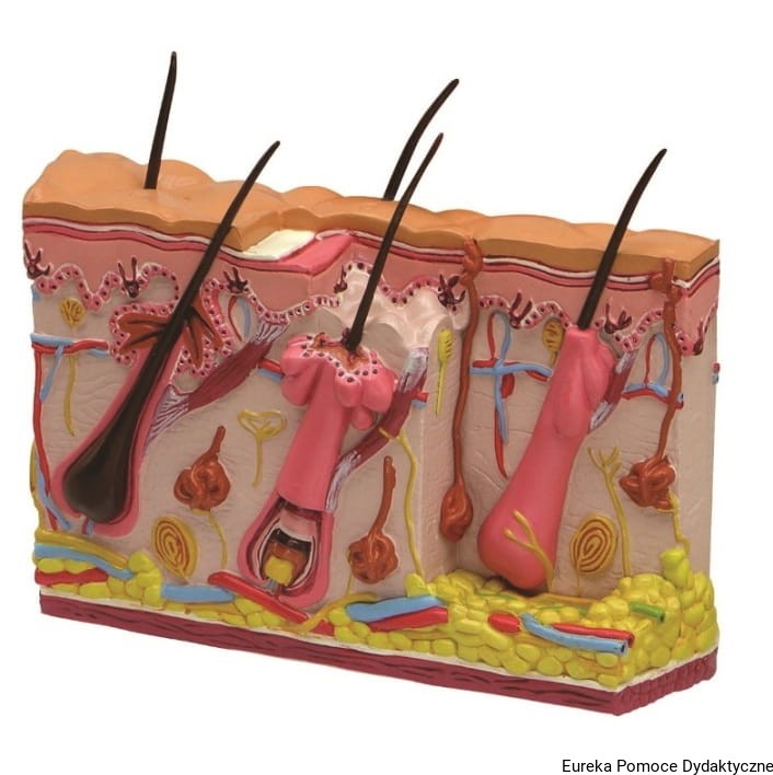 Model skóry ze zmianami trądzikowymi w przekroju, to dwustronna replika.