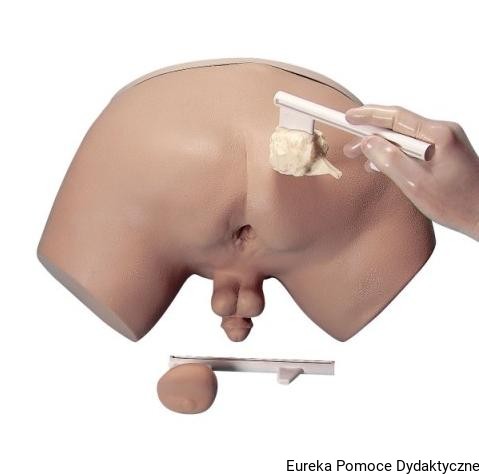 Całość składa się z modelu części miednicowej (symulator) i czterech modeli prostaty, które umieszcza się wymiennie we wnętrzu symulatora w celu przeprowadzenia badania per-rectum.