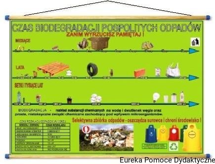 Taśma czasowa biodegradacji pospolitych odpadów, to pomoc dydaktyczna uświadamiająca potrzebę wyrabiania proekologicznych zachowań i nawyków. Zwrócenie uwagi na to, iż beztroskim śmieceniem w sposób nieodpowiedzialny obciążamy środowisko na setki i tysiące lat - dydaktyczny apel wskazujący istotę potrzeby selektywnej zbiórki odpadów, dzięki której utrzymujemy porządek ale przede wszystkim chroniąc środowisko - oszczędzamy energię. .