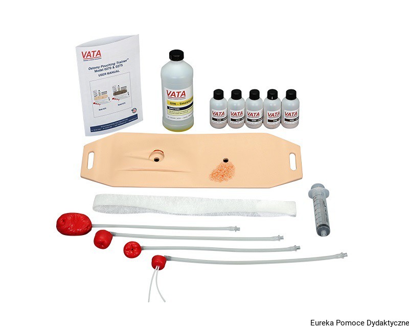Prezentowany trenażer stomijny demonstruje wydzielanie stolca lub moczu, co pozwala na realistyczny trening opieki nad pacjentem.