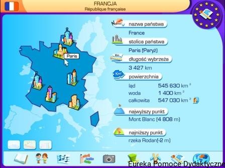 Część edukacyjna zawiera podstawowe dane statystyczne o państwach UE, informacje o przemyśle i rolnictwie – można tutaj znaleźć mapy konturowe zawierające główne elementy charakteryzujące poszczególne kraje, położenie miast, pasm górskich, wyżyn i nizin, rzeki, tereny przemysłowe oraz rolnicze.