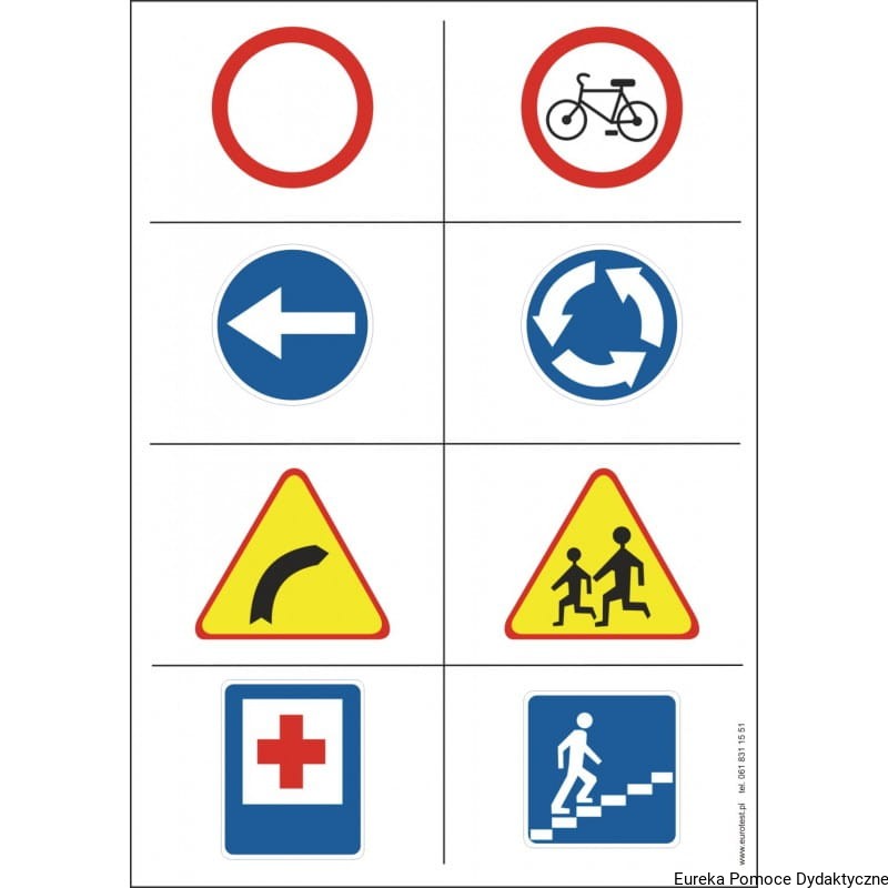 5. Przykładowe znaki drogowe: nakazu, zakazu, ostrzegawcze i informacyjne.