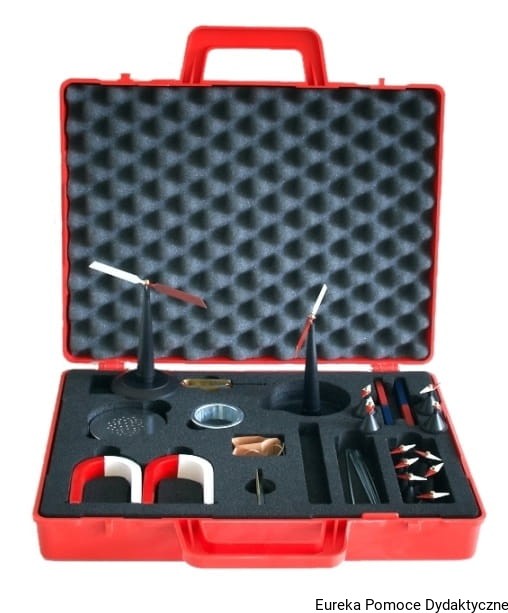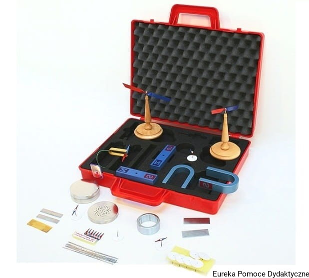 Zestaw do magnetyzmu wykorzystywany jako pomoc dydaktyczna w nauczaniu fizyki w szkole podstawowej, gimnazjum oraz w szkołach ponadgimnazjalnych.